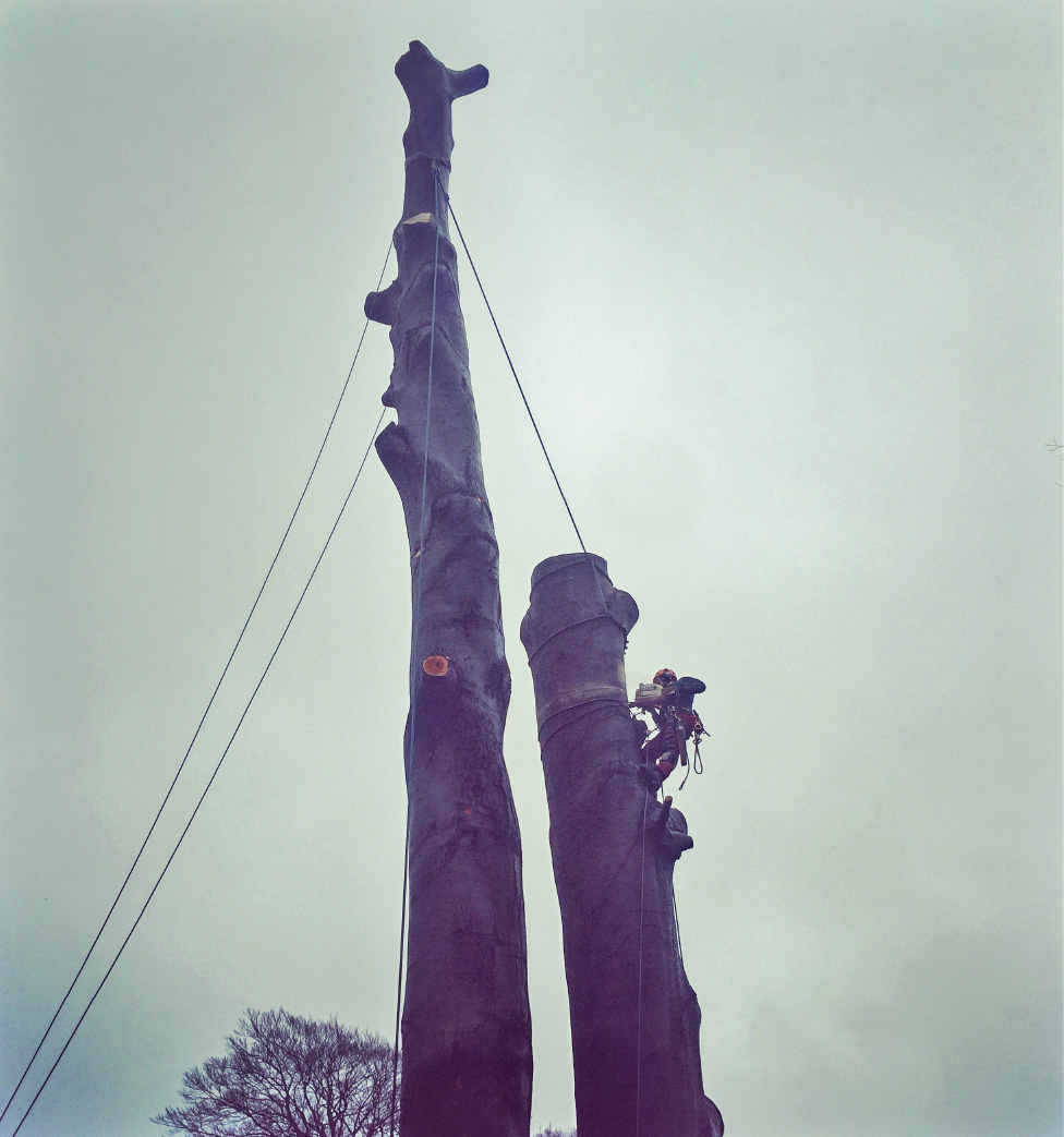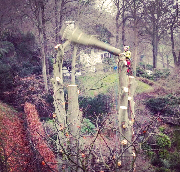 Ist das Baumumfeld aber begrenzt und der ästhetische Aspekt spielt neben dem Risiko, das zwar minimiert, aber trotzdem immernoch von einem Habitat ausgeht zu groß, wird der Baum bis in Bodennähe abgetragen.